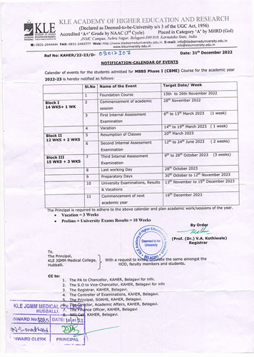 CALENDER OF EVENTS MBBS