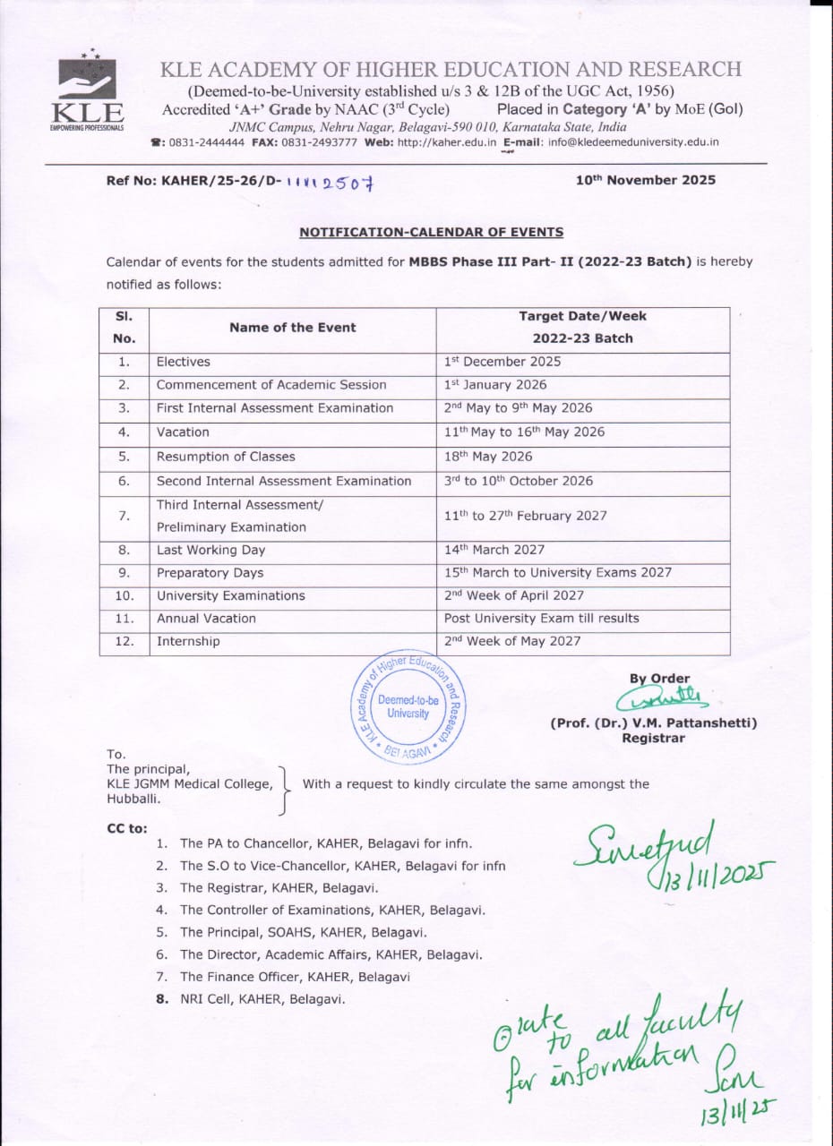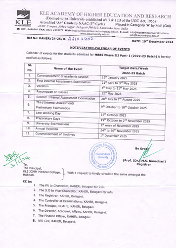 University Exam Notification for MBBS Phase III Part I November 2025 Click here University Supplementary Exam Notification for MBBS Phase I October 2025 Click here Deekharambh - Foundation Course for 1st MBBS Students 2025-26 Batch Click here University Supplementary Exam Notification for MBBS Phase II September 2025 Click here Admission Procedure for KEA Seats 2026 Click here Admission Procedure for MCC Seats 2026 Click here University Exam Notification for MBBS Phase I September 2025 Click here University Exam Notification for MBBS Phase II August 2025 Click here