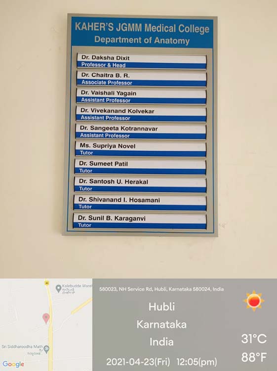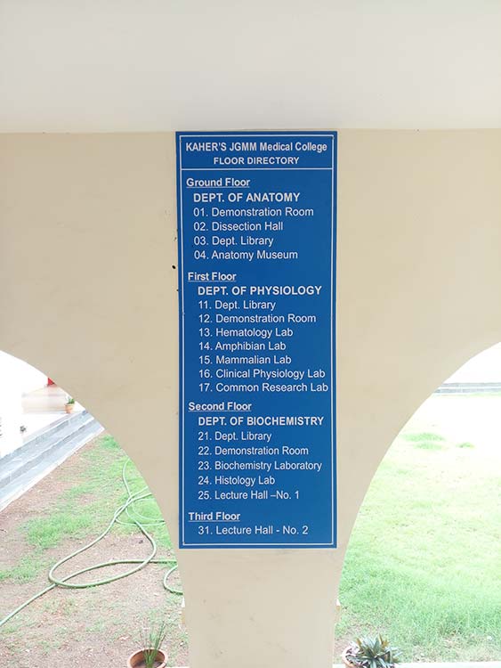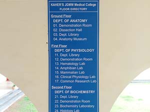Gallery JGMM Medical College Entrance Administrative Building Principal Chamber Administrative Office Academic Block Arial View of Academic Block Floor Directory Department of Anatomy Faculty Profile Anatomy Dissection Hall Anatomy Museum Anatomy Histology Laboratory Department of Physiology Heamatology Laboratory Amphibian Laboratory Mammalian Laboratory Clinical Physiology Laboratory Department of Biochemistry Biochemistry Laboratory Lecture Hall 1 Lecture Hall 2 Lecture Hall 3 (KLE Suchirayu Teaching Hospital of JGMM MC) Demonstration Room Demonstration Room Clinical Skill Laboratory Medical Education Unit Central Library Central Library Digital Library Girls' Common Room Boys' Common Room Suchirayu Hospital Suchirayu Hospital Emergency Ward Emergency Ward Intensive Care Units Operation Theatre Complex Operation Theatre Complex Operation Theatre Complex (Post-Op.) Blood Bank Laboratory Radiology Department Pharmacy Central Sterile Supply Department Central Sterile Supply Department Medical Records Department Kitchen