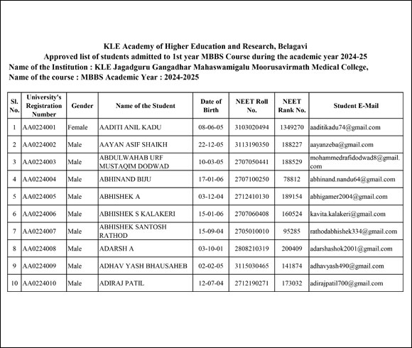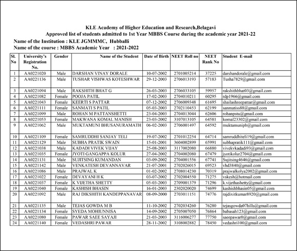 MBBS Rank Wise Students List MBBS 2024-25 Batch MBBS 2023-24 Batch MBBS 2022-23 Batch MBBS 2021-22 Batch