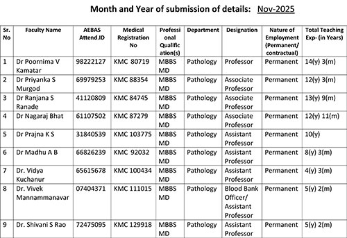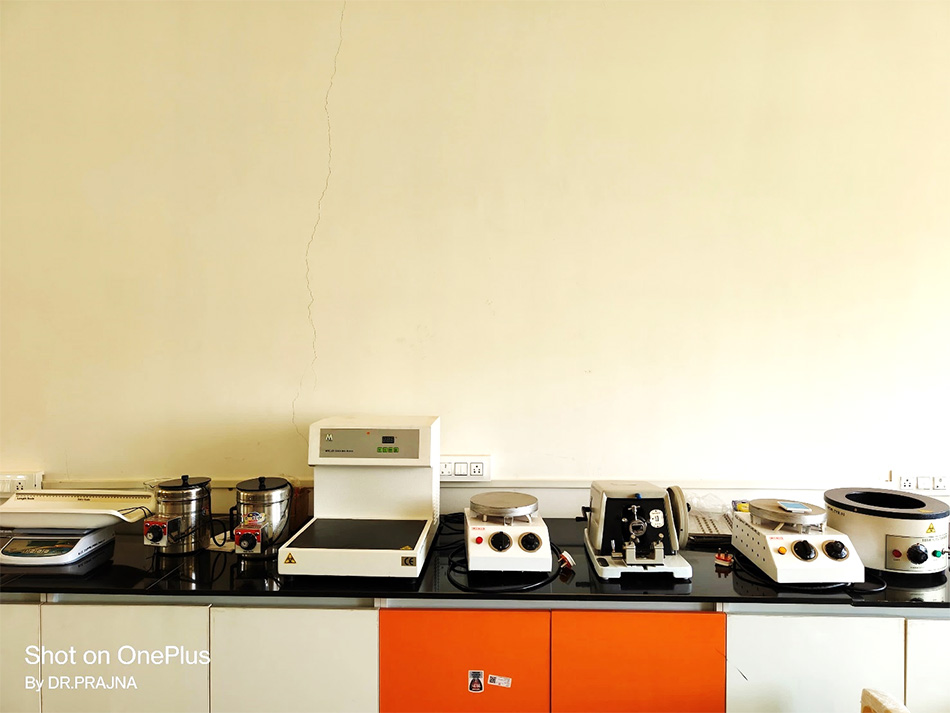 - Department is well equipped with adequate learning resources with binocular and multihead teaching microscopes (penta and decahead) with projection, LCD demonstrations for lectures & practicals, slides for histopathology, cytopathology & hematology, charts and photographs for effective undergraduate teaching.